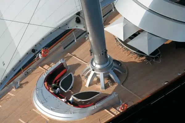 Но особую уникальность имеет то, что гигант может легко управляться всего одним человеком, то есть собственно владельцем без помощи команды. Все паруса управляются посредством электродвигателей и ставятся и убираются одним лишь нажатием кнопки.