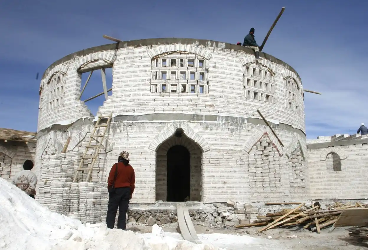 Из-за дороговизны обычных строительных материалов, многие посетители останавливаются в отелях, построенных почти полностью (стены, крыша) из соляных блоков. Хуан Кесада первым предложил идею строительства соляного отеля, потому как соль на протяжении веков была самым практичным строительным материалом в этой области. Первый такой отель построили в 1995 году в центре солончака Уюни, и он очень быстро превратился в популярный туристический объект. Но расположение отеля в центре солончака вызвало ряд санитарных проблем. Серьезное загрязнение окружающей среды побудило власти закрыть и демонтировать гостиницу в 2002 году. Позже были построены несколько новых отелей из соли на окраинах солончака в полном соответствии с экологическими нормами.