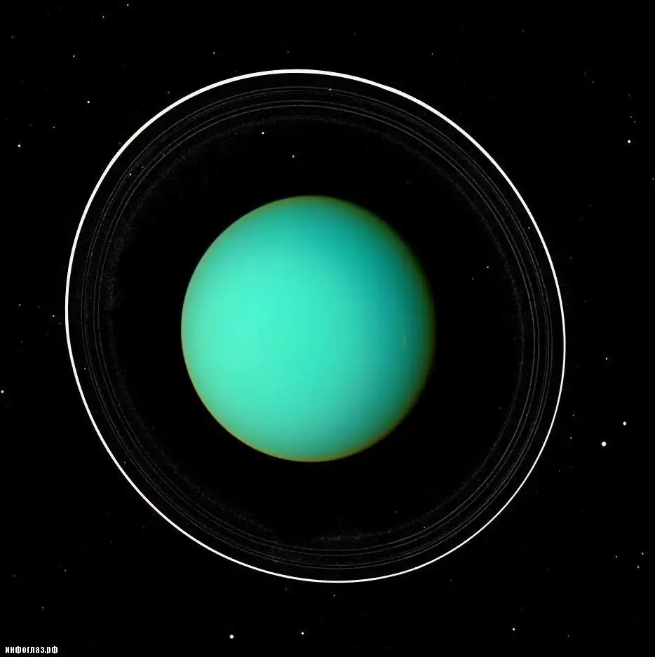 Уран, когда-то считавшийся одной из самых спокойных планет, проявил себя как динамичный мир с некоторым количеством ярчайших облаков в солнечной системе и одиннадцатью кольцами. Это первая планета, обнаруженная с помощью телескопа, Уран был открыт в 1781 году астрономом Уильямом Херсчелом. Эта седьмая планета от Солнца настолько удалена, что полный оборот вокруг его оси занимает 84 года. Уран, не имеющий твердой поверхности – это одна из газовых планет-гигантов (к другим относятся Юпитер, Сатурн и Нептун).