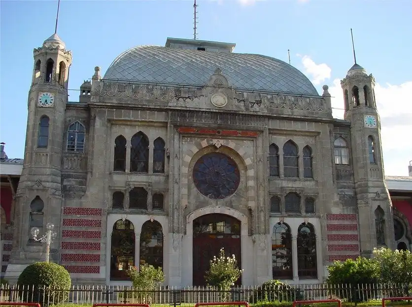 Построенное в 1890 году в качестве конечной станции поезда Orient-Express, идущего из Парижа, это здание в османском стиле модерн особенно привлекательно своим фасадом. Полоски красного кирпича окружают широкий вход, а красочные витражи на окнах создают брызги цвета внутри здания. Несмотря на то что этот главный вход теперь уже не используется, люди частенько останавливаются перед ним, чтобы полюбоваться строением, а может, и застать случайное выступление Дервишей, кружащихся внутри большого зала.