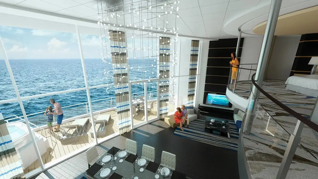 - На борту лайнеров класса Quantum представлено 2,090 самых просторных кают во всем флоте Royal Caribbean, включая 1,570 кают с балконом, 147 кают с видом на океан и 373 внутренние каюты с «виртуальным балконом». 34% от общего числа кают могут быть соединены между собой и образовать каюты нового класса family-connected.