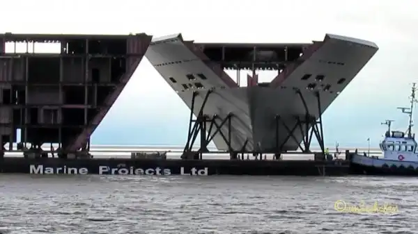 - Капсула поднимается под углом 80-градусов, затем опускается в горизонтальное положение и свешивается за борт. В таком положении ее длина достигает 41 м.