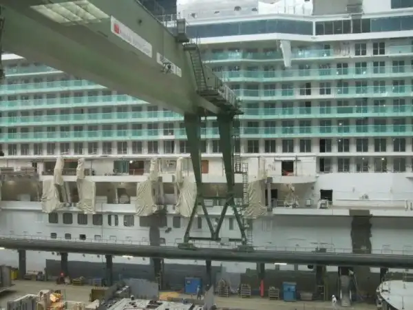 Одной из особенностей новых судов станет так называемая “Северная звезда” – стеклянная кабина, поднимающая пассажиров на 100 метров над бортом. Эта движущаяся смотровая площадка будет функционировать вне зависимости от того, находится лайнер в море или стоит в порту.