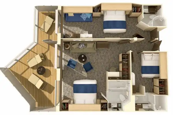 - Эти каюты прекрасно подходят для отдыха семей различных возрастов. Они соединенные коридором, что позволит гостям проводить время вместе и иметь личное пространство, в каждой каюте есть отдельная спальня и ванная комната.