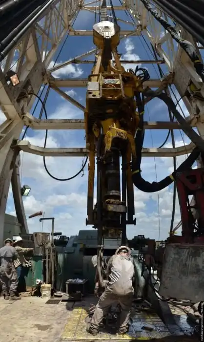 В данный момент на месторождении работает более двухсот буровых установок, а разработку ведут около 110 компаний самого различного размера, от гигантов в лице БиПи и Шелла, до мелких компаний, состоящих из одной семьи, владеющей землей.