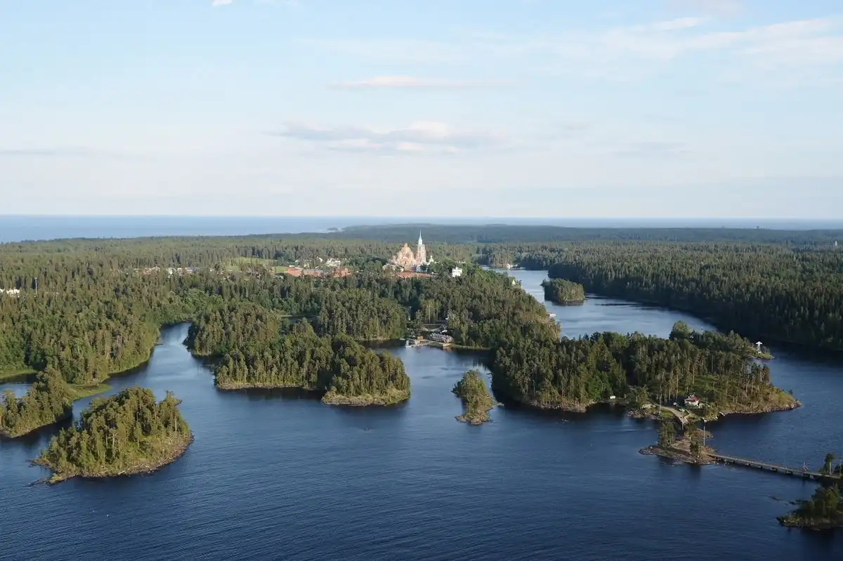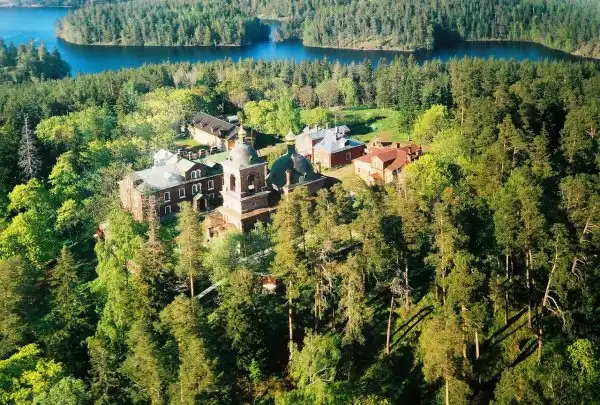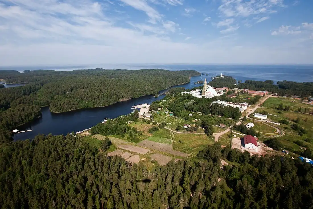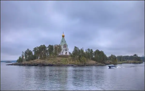 В глубокой древности, во времена распространения христианской веры апостол Андрей Первозванный шел на север, проповедуя евангелие. Предание повествует о том, что ученик Иисуса Христа, пройдя Днепр и Волхов, вошел на ладье в "бурные и вращающиеся воды озера Нево" и установил на горах Валаамских каменный крест. Спустя девять веков двое иноков, Сергий и Герман, пришли "от восточных стран", "вселились" на один из скалистых островов и основали монашеское братство. Житие, повествующее об их подвигах, считается утраченным. Мощи преподобных были обретены нетленными в XII в. и скрыты в толще каменной горы, на вершине которой возносит к небу кресты Спасо-Преображенский Валаамский мужской монастырь.