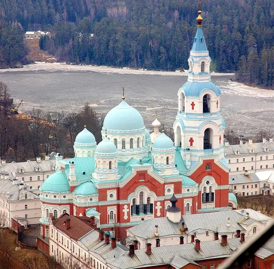 Эпидемии и войны привели к запустению. В 1715 г. по ходатайству архимандрита Кирилло-Белозерского монастыря Петр I издал указ о восстановлении Валаамской обители. В 1720 г. построен деревянный Спасо-Преображенский собор, освященный во имя Иоанна Богослова и Андрея Первозванного, келейные корпуса и хозяйственные постройки. Спустя 10 лет появилась Успенская церковь. В 1752 г. монастырский комплекс был обнесен деревянной оградой. А в 1754 г. случился пожар, истребивший эти первые постройки. Благодаря поддержке императрицы Елизаветы Петровны монастырь восстановили, но монашеская жизнь в нем еле теплилась: в 1765 г. в обители жили всего 11 монахов. В конце XVIII - начале XIX в. монастырь благоустраивался. Соборный храм Преображения господня был освящен в 1794 г. В его нижней церкви покоились мощи преподобных Сергия и Германа. Вокруг собора были квадратом сооружены корпуса келий. По углам квадрата возвышались Успенская и Никольская церкви. К зимней Успенской примыкали ризница и библиотека. В 1805 г. возведена надвратная церковь во имя Святых апостолов Петра и Павла. Над Валаамом возвышается огромная монастырская колокольня, ее высота - 38 м. Самым большим среди валаамских колоколов был 1000-пудовый колокол, отлитый в честь апостола Андрея Первозванного.