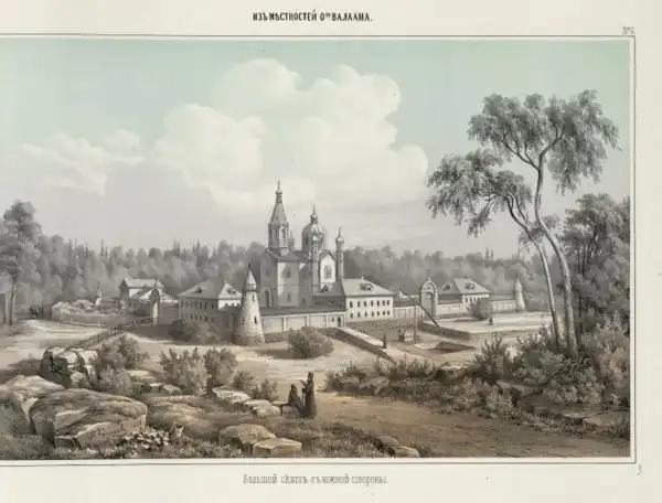 Название Валаам происходит от финно-угорского слова "валам" — высокая, горная земля. Монахам это название показалось созвучным имени библейского пророка, и они нарекли его Валаамом. На протяжении веков, когда единственным хозяином этих мест был монастырь, остров превратился в единый ландшафтно-архитектурный комплекс. Здесь возводились церкви, часовни, скиты и хозяйственные постройки; прокладывались дороги, были соединены мостами острова, посажены деревья, заложены сады и огороды. Кроме того, Валаам являлся одним из крупнейших центров книгопечатания на Руси.