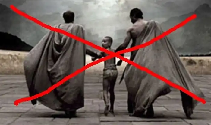В возрасте 7 лет мальчиков-спартанцев забирали из родного дома для поступления на военную службу («агогэ»), где из них делали бесстрашных воинов и ответственных граждан.