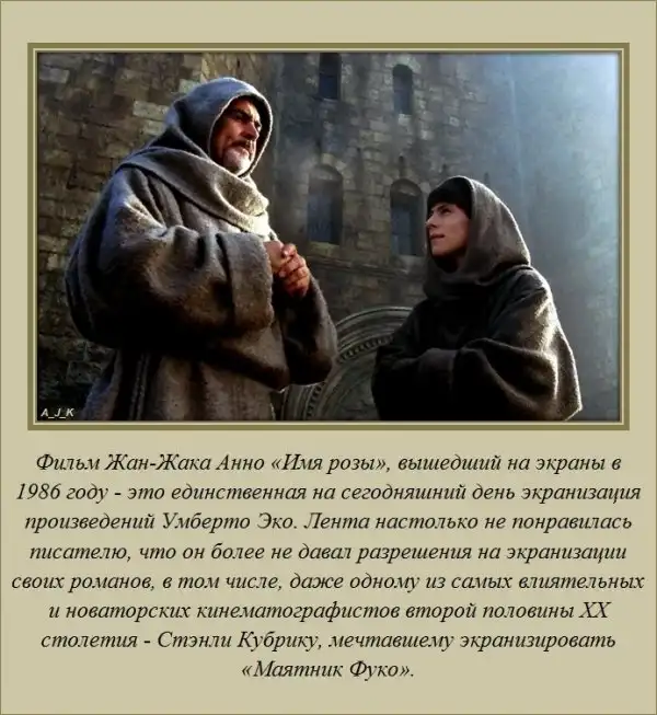 "Имя розы" мой любимый средневековый триллер.Потом прочитал книгу.Тот редкий случай,когда фильм оказался более предпочтительным.Это моё мнение и оно может не совпадать с мнением профессиональных критиков и самого автора Умберто Эко.