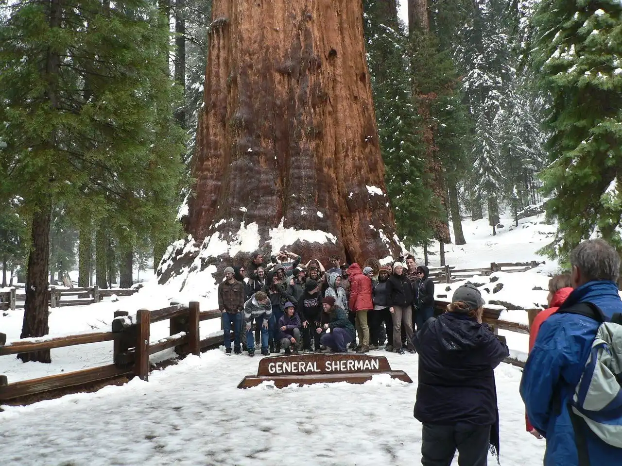 Туристы специально приезжают в парк, чтобы увидеть дерево Генерала Шермана, названное так в честь героя гражданской войны генерала Уильяма Шермана (William Sherman), и сфотографироваться. Рядом с секвоей они кажутся такими хрупкими и маленькими.