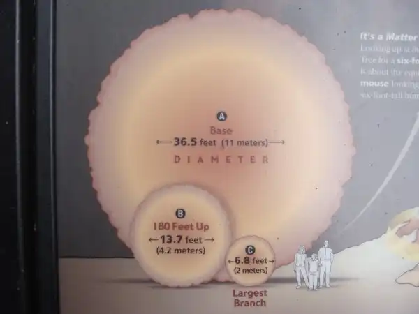 Несколько цифр. Окружность ствола у самой земли равна 31,3 м. Размах кроны равен 39,6 метрам. Общая масса дерева – 1910 тонн, вес ствола – 1121 тонна.