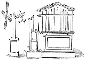 Созданный Героном орган не был оригинальным, а лишь представлял собой усовершенствованную конструкцию гидравлоса — музыкального инструмента, придуманного Ктесибием. Гидравлос — представлял собой набор труб с клапанами, создававшими звук. Воздух в трубы подавался при помощи резервуара с водой и насоса, создававшего необходимое давление в этом резервуаре. Управление клапанами труб, как и в современном органе, осуществлялось при помощи клавиатуры-манипулы. Герон предложил автоматизировать гидравлос, при помощи ветряного колеса, которое служило приводом для насоса, нагнетавшего воздух в резервуар.