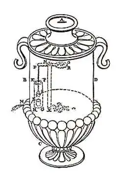 Изобретение представляет собой два сосуда, соединенных трубкой. Один из сосудов наполнялся водой, а второй вином. Прихожанин доливал небольшое количество воды в сосуд с водой, вода поступала в другой сосуд и вытесняла из него равное по объему количество вина. Человек приносил воду, а она «по воле богов» превращалась в вино! Это ли не чудо?