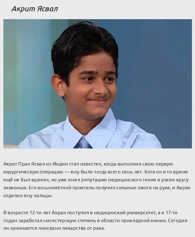 Большинство людей старается добиться лучших результатов в своей профессиональной области, затрачивая на это уйму усилий и времени, а кому-то с рождения дается талант от природы, и дети могут даже превосходить взрослых в той или иной сфере науки.