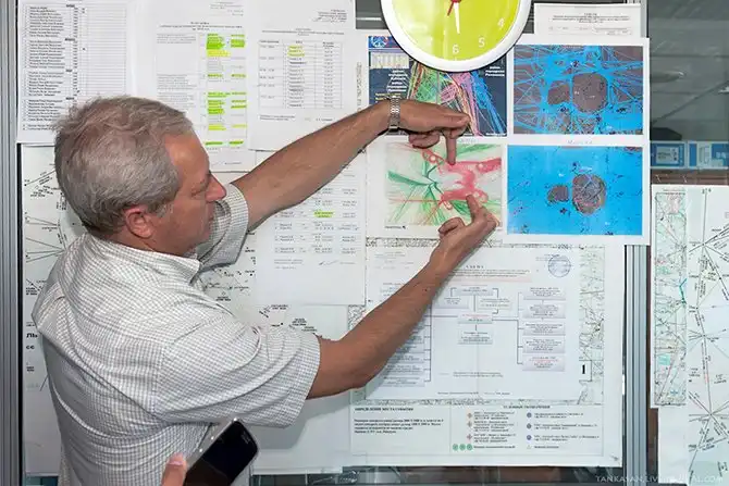 У диспетчеров 6 смен, в каждой – 10 человек: руководитель полётов, старший диспетчер и 8 диспетчеров (это списочный состав, по факту одновременно работает 6-7 человек). Режим работы диспетчера не должен превышать 36 часов в неделю. На смену диспетчеры выходят по графику: день, утро, ночь. При выходе на смену проводится 15 минутный инструктаж, ещё 15 минут уходит на приём/сдачу дежурства.