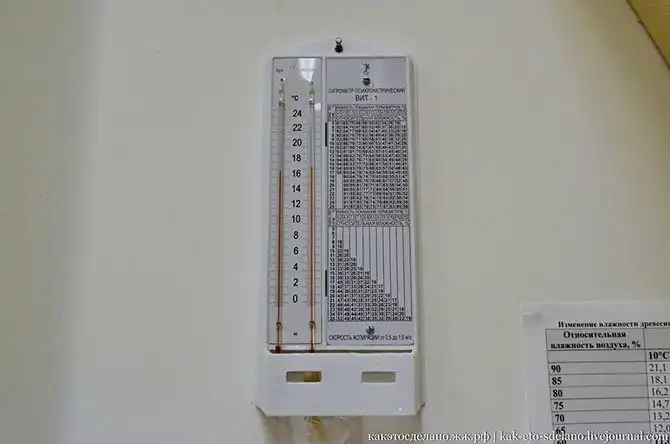 Здесь же висит гигрометр показывающий степень влажности в помещении. Правда мастер сказал, что у него неправильные показания).