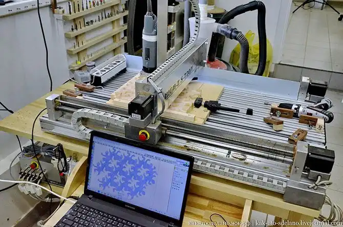 Для изготовления некоторых досок, с особо сложным рисунком применяется станок с чпу (числовым программным управлением). Станок небольшой, достаточно подключить к нему ноутбук с заранее заданной программой.