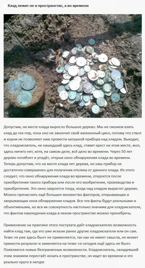 чем больше в кладе монет, тем слабее сигнал и меньше глубина обнаружения. В случаях хорошей компактности, особенно, если монеты мелкие и все одинаковые, прибор может не видеть клад совсем.