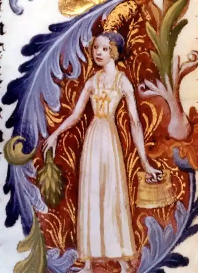 Прислужница в купальне — заметим, с веником. «Wenzelsbibel», ок.1400 г