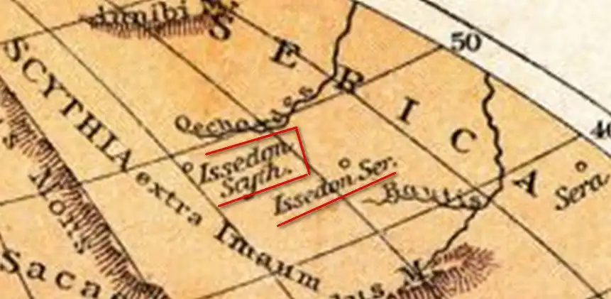 Напомню, что Исседон (Issedon) главный центр страны сербских синдонов (Serican Issedones), располагался так же, на северном склоне Алтайских гор. В связи с исседонами следует вспомнить незабвенного Геродота и локализацию современными географами и историками страны исседонов в Западной Сибири на реке Кампилин. Многие сходятся во мнении, что река Иртыш носила какое-то время название Кампилин, а исседоны Геродота - это родственники синдонов (синдов Причерноморья), индо-арийский народ, однако. В Причерноморье они проживали по реке Танаис-Дон и был у них город Томарха (позже Тмутаракань). В Сибири исседоны (некоторая их часть) сидели по берегам реки Томи и был у них город, Грустина назывался. Сегодня на месте Грустины-Эушты стоит город Томск. Очень близкие аналогии, главное - народ-то один, - исседоны-синдоны, позже их назовут челдоны. О коренном Сибирском народе челдонах, которые жили здесь задолго до прихода Ермака, будет рассказано позже.