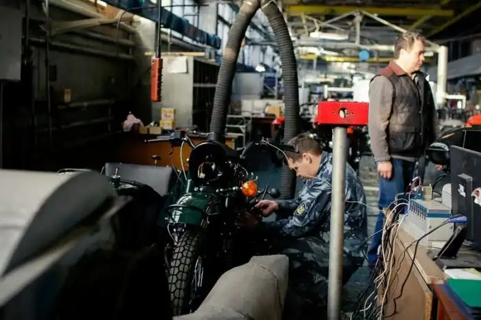 В цеху окраски работают в основном женщины. Мужики трудятся на сварке, резке и сборке. Один работяга может обслуживать по 10 станков. Работа неспешная, потому что норма — 5 мотоциклов в день. В советское время за каждым станком было по два рабочих, трудились в две смены. В год предприятие выдавало по 10 000 единиц техники.