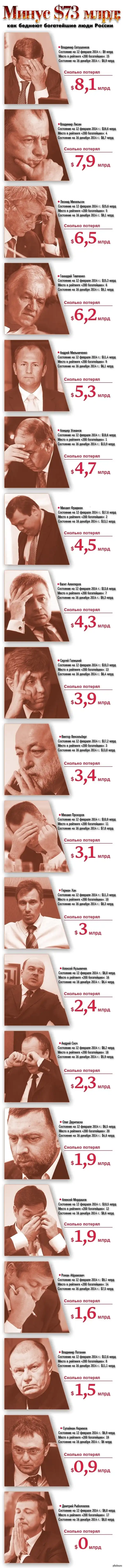 Реально что-то потерял только Евтушенков. У остальных просто капитализация акций на бирже просела. Возобновится рост стоимости акций - начнут постить, кто сколько "заработал".