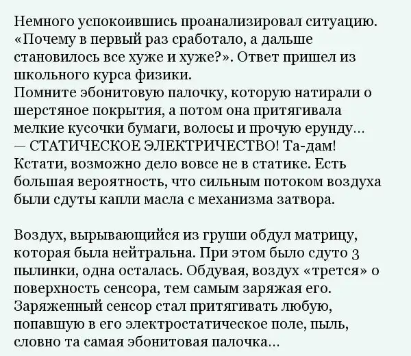 Многие владельцы зеркальных фотоаппаратов в полном объеме не располагают достаточной информацией на счет их эксплуатации и обслуживании, а потому и случаются подобные ситуации.