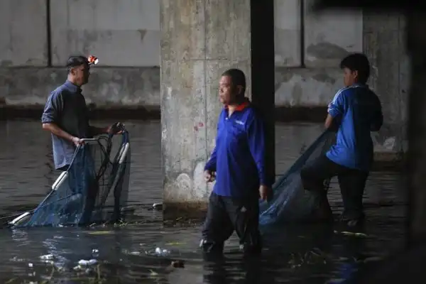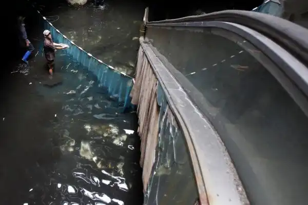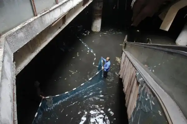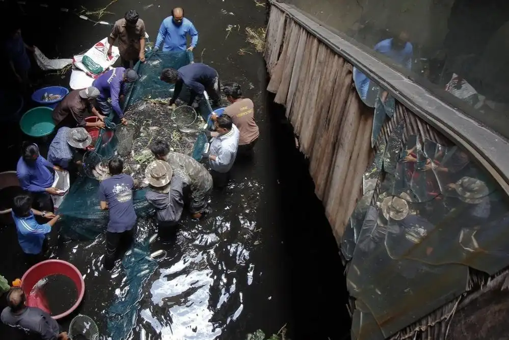 Универмаг в Бангкоке, Таиланд был закрыт в 1997 году, на его цокольном этаже собралась дождевая вода. Тысячи рыб, таких как сом, карп, а также черная и красная тиляпия, были выпущены в воду универмага, что бы контролировать численность комаров. Недавно было принято решение выловить всю рыбу и выкачать воду. Эти кадры были сделаны 13 января 2015 года.