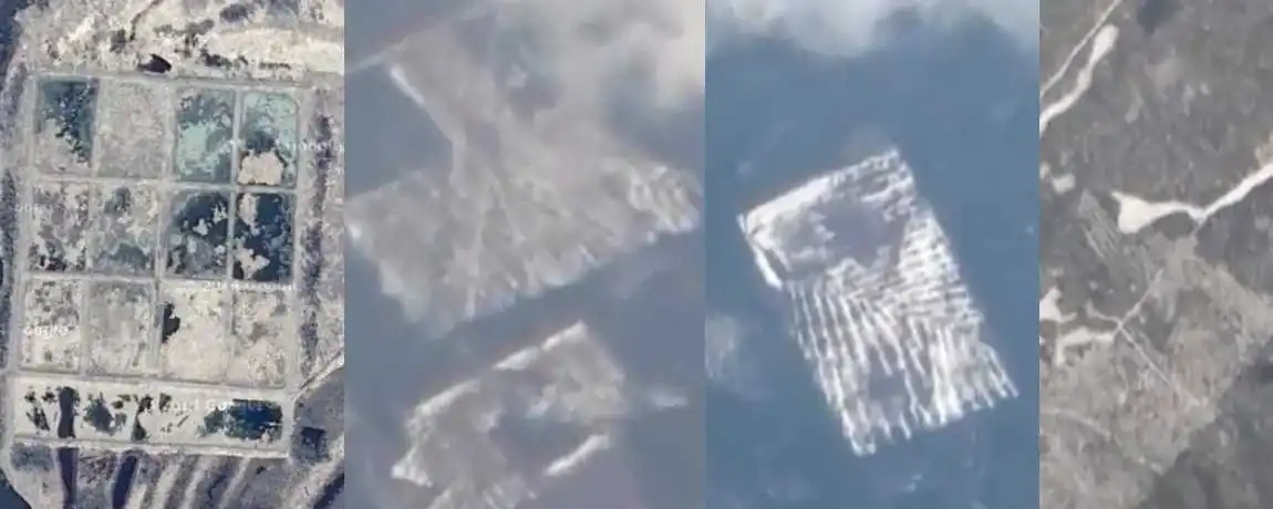 Не стал полностью выкладывать, а немного нарезал для уменьшения веса видеофайла. Снято при перелёте из Нового Уренгоя в Москву, приобский бассейн безлюдных земель с высоты 10 км, наблюдаются многочисленные многокилометровые полосы на земле, ровные, без учёта рельефа местности, пересекающиеся под разными углами, иногда параллельные. ( Фото и видео).