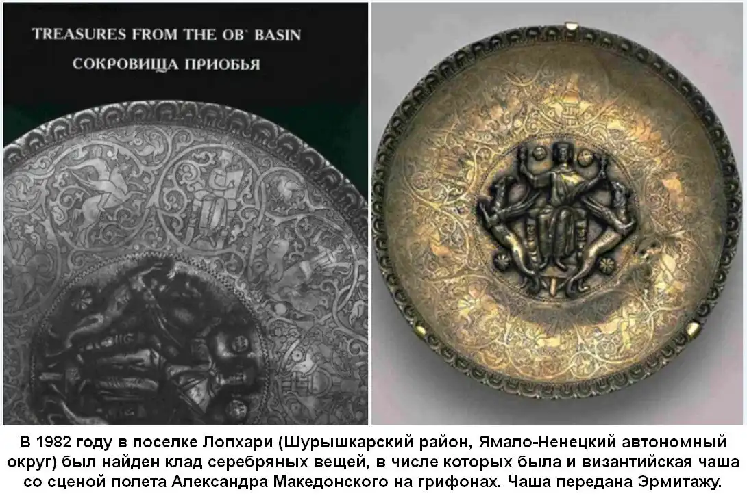 А вот на изображении ниже найденная чаша у села Вильгорт, это Приуралье, ближайшие города: Березники, Пермь, Нижний Тагил. Может быть, Македонский проходил эти места, двигаясь в страну мрака?