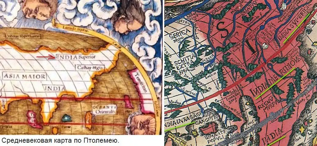 Существование картографического материала с Индией, расположенной в Сибири, учёные не отрицают. Да, есть такие материалы. Но в расчёт при построении карты Древнего мира их не берут, так как меняется вся картина мира, меняется вся история. Мы же эти картографические материалы не только признаем, но от них и будем отталкиваться. Итак, средневековая картография свидетельствует: Индия на территории современной Сибири существовала. Даже на Русском Севере по сей день можно встретить названия рек, явно связанные с санскритом, объясняемые только при помощи древнего языка арьев - санскрита, так же как названия многих деревень и сёл. Вот индийские имена рек Архангельской и Вологодской областей: Ганга, Гавиньга, Гангрека, Гангозеро, Гавяна, Индога, Индига, Калия, Лала, Лакшма, Сумера, Тара и т. д., и т. п. (названия даются по картам, взятым из дореволюционных изданий).