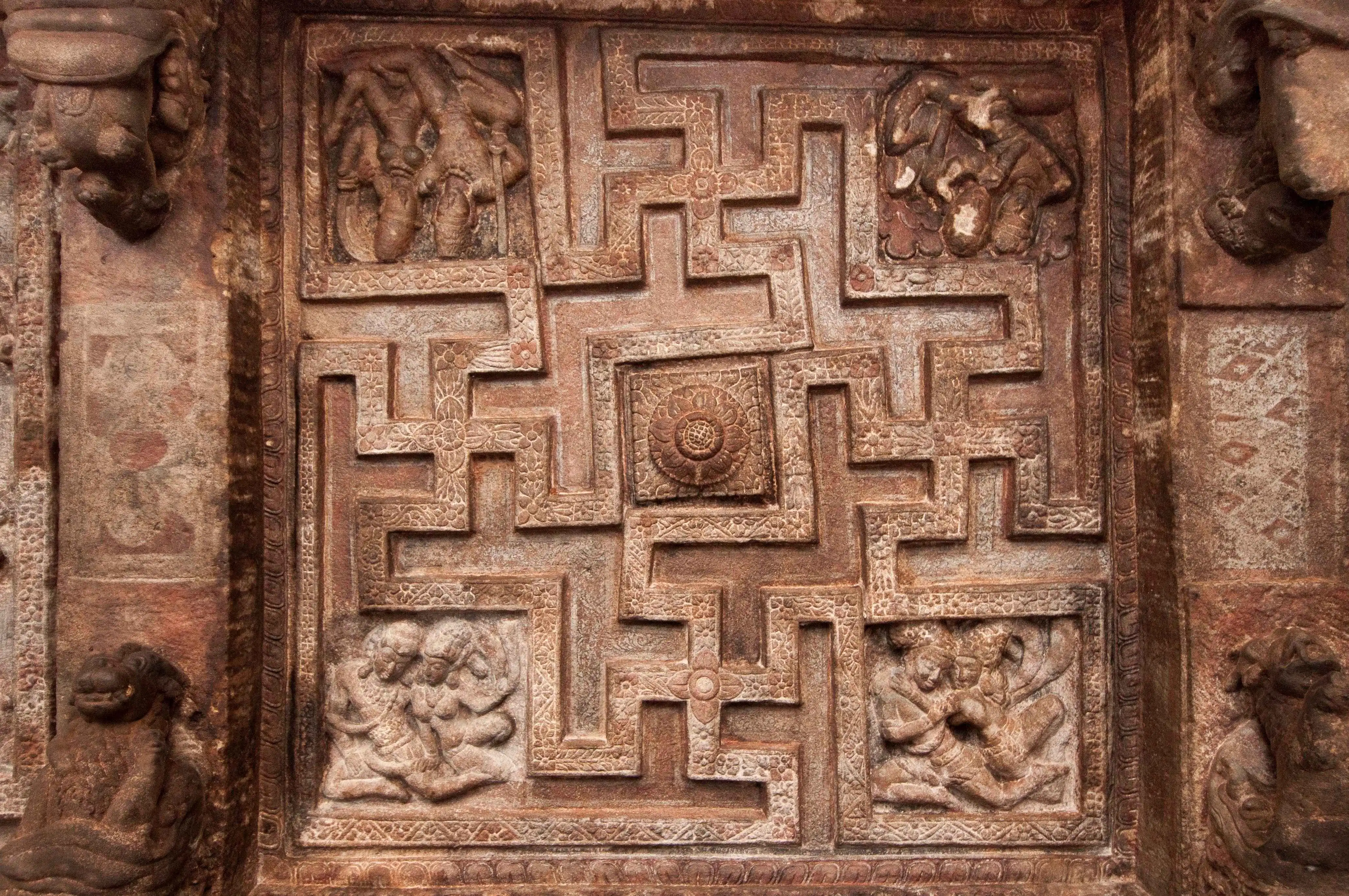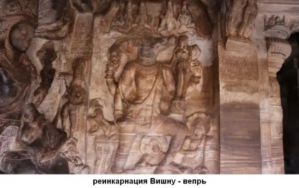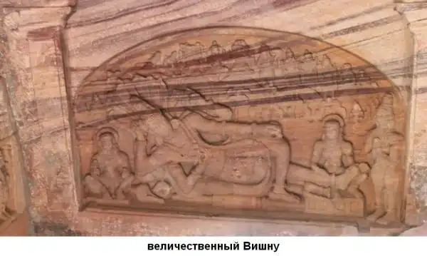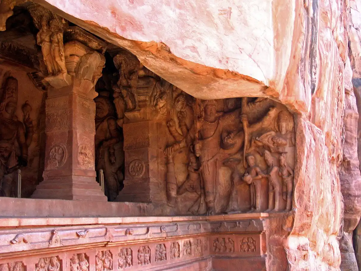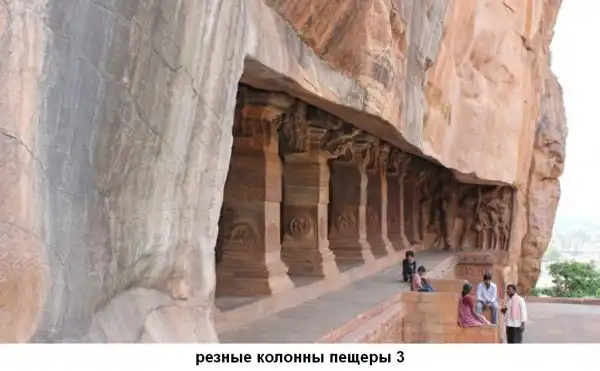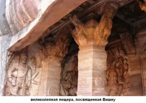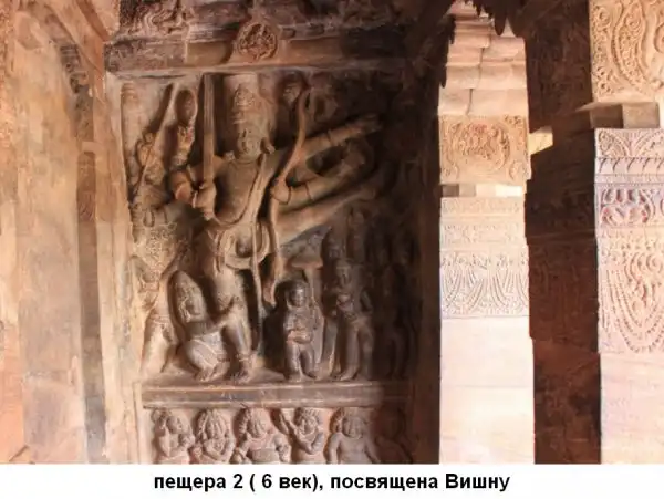 Горельеф на внешней стене первой индуистской пещеры Бадами.
