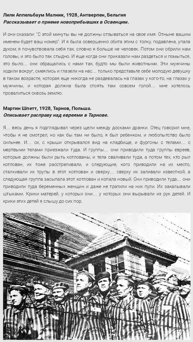 Страшные времена Холокоста остались далеко позади, однако, среди нас осталось немало свидетелей и людей, которым самим пришлось пережить те ужасные мучения, которым подвергали их нацисты.