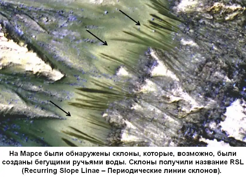 Атмосферное давление на Марсе очень низкое, примерно в 100 раз меньше давления на Земле, поэтому вряд ли жидкая вода может сохраниться на поверхности Красной планеты. Однако темные длинные линии, которые мы можем видеть на поверхности Марса, намекают на то, что соленые потоки воды могут течь по ним каждую весну.
