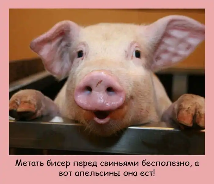 4) Метать бисер перед свиньями бесполезно, а вот апельсины она ест!