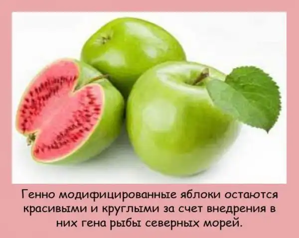 2) Генномодифицированные яблоки остаются красивыми и круглыми за счет внедрения в них гена рыбы северных морей.