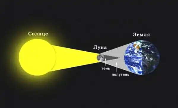 Затмение происходит, когда небесное тело, например, Луна или планета проходит в тень другого тела. На Земле можно наблюдать два типа затмения: солнечное и лунное.