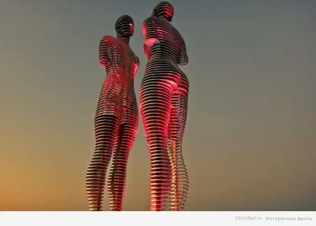 Скульптура «Али и Нино» в Грузии. Семиметровый уникальный шедевр, где фигуры медленно движутся друг к другу.
