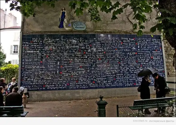 Парижская стена Любви в центре сада на Монмартре. «Я люблю тебя» на ней встречается больше 1000 раз на 311 разных языках.