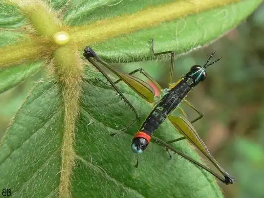Этот интересный снимок был сделан в Колумбии. На нем изображен кузнечик с 2 головами по обе стороны тела.