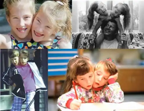 Эбегейл Хенсел и Бритни Хенсел – сиамские близнецы. Они родились 7 марта 1990 года в городе Карвер (Минисота, США). Хотя каждая из них управляет своей стороной тела, тем не менее они приспособились легко передвигаться.