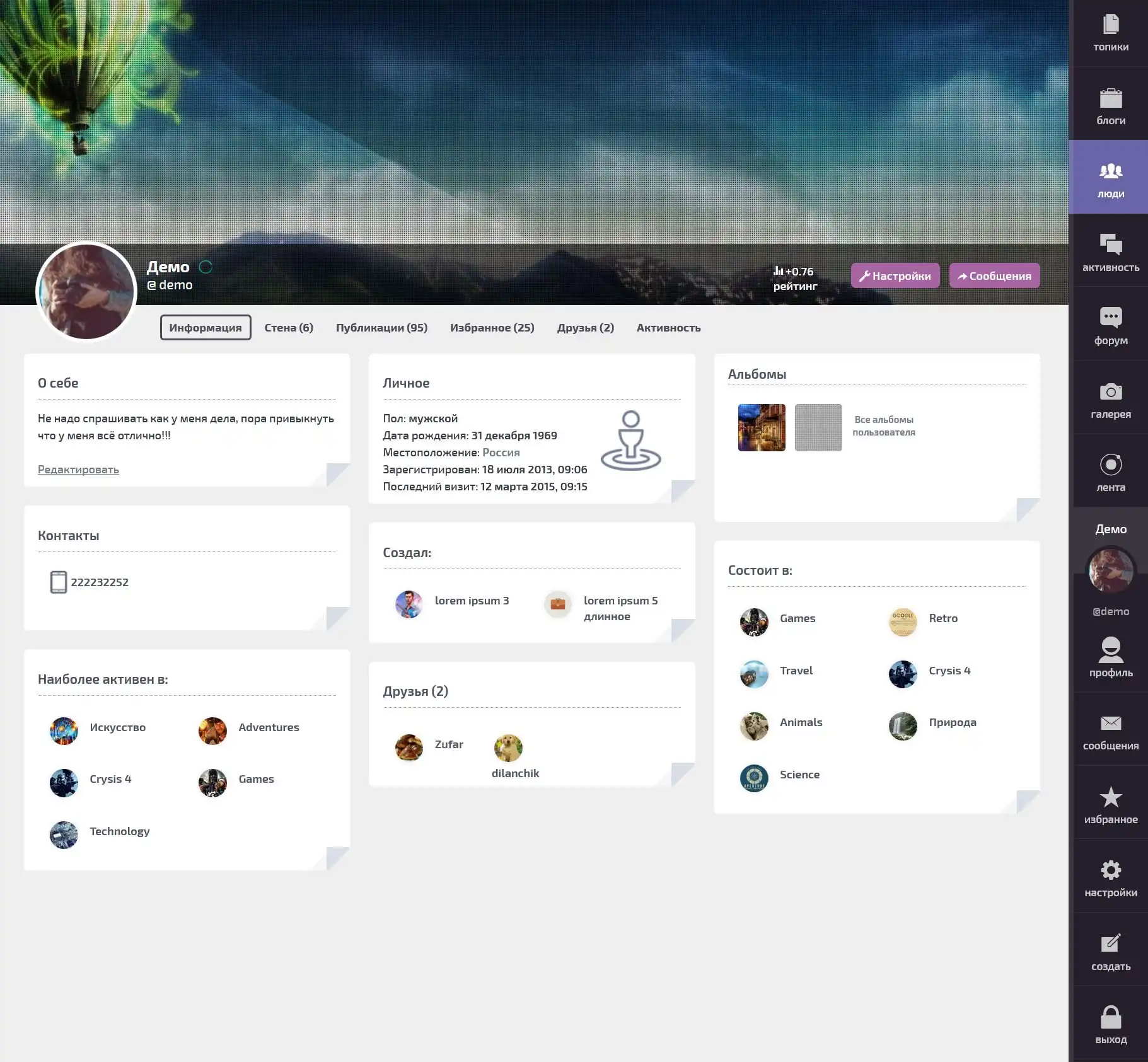 Я как понял, что он будет иметь очень много социальных функций, в виде: лента, друзья, подписчики и тд.