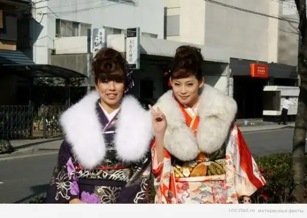 В День Совершеннолетия все двадцатилетние девушки облачаются в шикарные дорогие кимоно «фурисоде», а парни надевают европейские мужские костюмы.