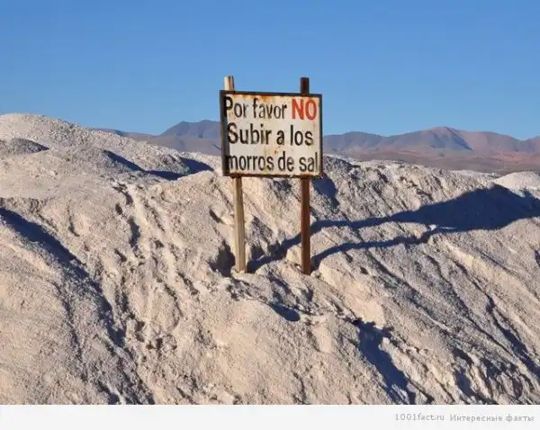 Как оказалось многие хотят походить по долине, которая кажется усыпанной снегом при температуре воздуха до +40 по Цельсию. Или полюбоваться на целые дюны соли. Кстати, специально для туристов на некоторых холмах расставлены таблички, запрещающие взбираться на эти огромные кучи.