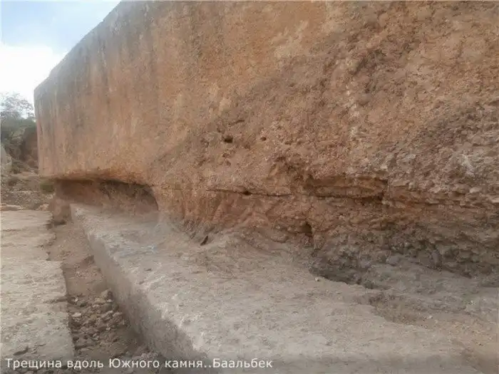 Скорее всего, он сделан лучевым резцом неизвестной высокотехнологичной конструкции. Такой луч вполне мог сделать подрез и под этим мегалитом.