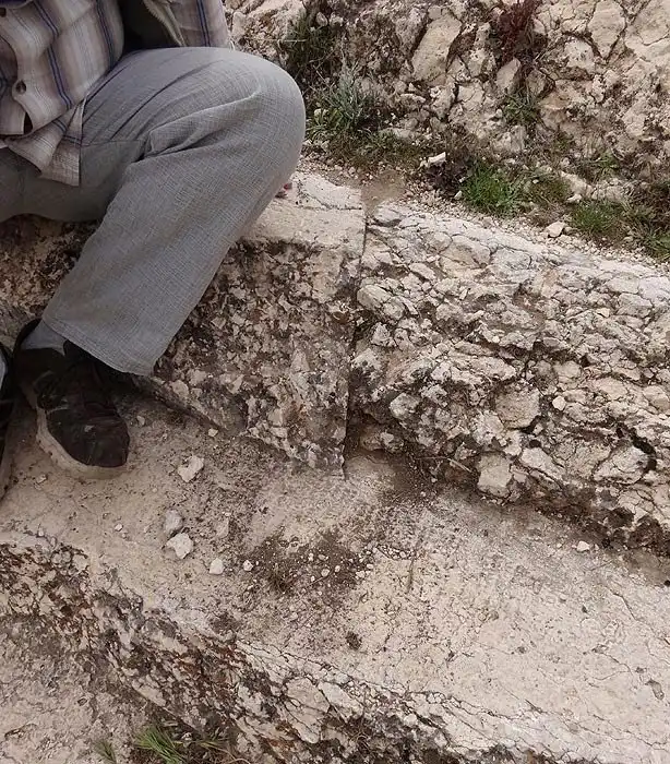 И это не самое интересное. Оказалось, знаменитый Южный камень, скорее всего, отрезан снизу от скалы горизонтальным разрезом. Линия разреза обнажилась, когда сняли слой почвы под камнем: