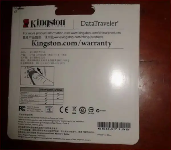 Наклейка с штрих-кодом содержит только несколько цифр и простой штрих-код, на оригинальном Kingston указывается два штрих-кода, номер партии изделия, информация о месте производства флешки, 12-значный штрихкод, парт-номер модели (прим. DTR30/64GB)…