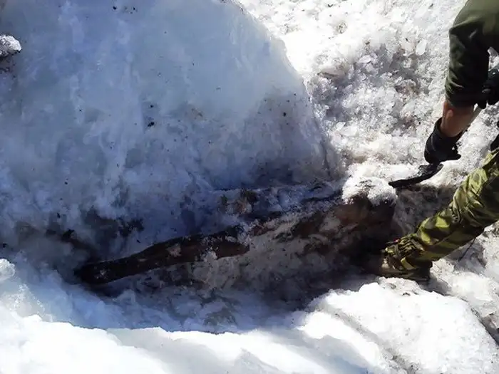 Но вот в один из дней нашли хорошо сохранившееся тело, с остатками амуниции и одежды, вмерзшее в ледник Гарабаши. Документов при нем не было, но судя по найденной пистолетной кобуре, остаткам портупеи, а главное лейтенантским кубарям, стало понятно, что это был младший офицер.