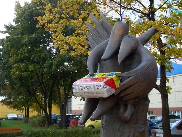 5. На углу улицы Руставели и Огородного проезда установлен памятник плавленому сырку «Дружба», который держат герои басни Крылова — Ворона и Лисица.